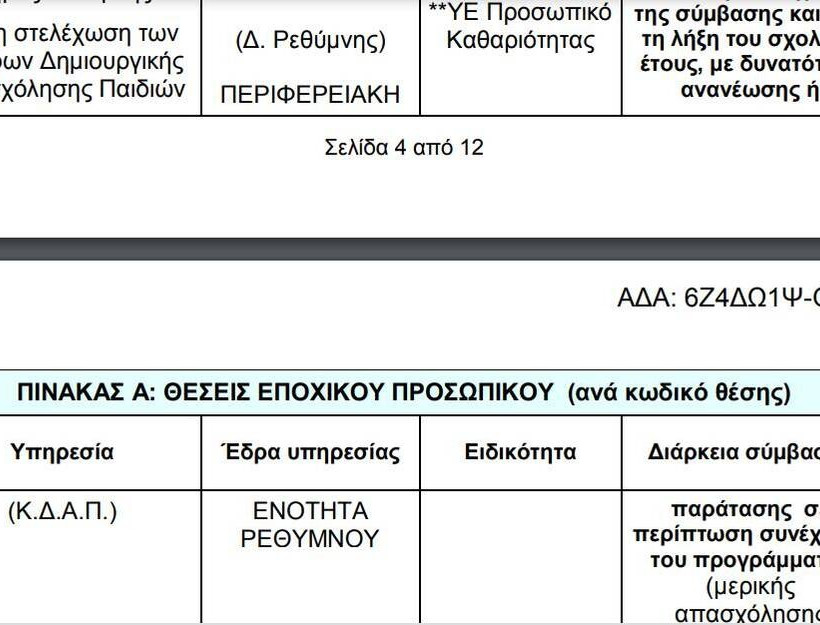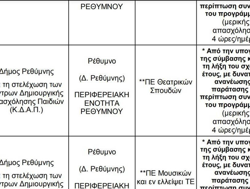 ΑΣΕΠ: O Δήμος Ρεθύμνης ανακοίνωσε την πρόσληψη, με σύμβαση εργασίας ιδιωτικού δικαίου ορισμένου χρόνου, συνολικά 24 ατόμων στα Κέντρα Δημιουργικής Απασχόλησης του Δήμου.