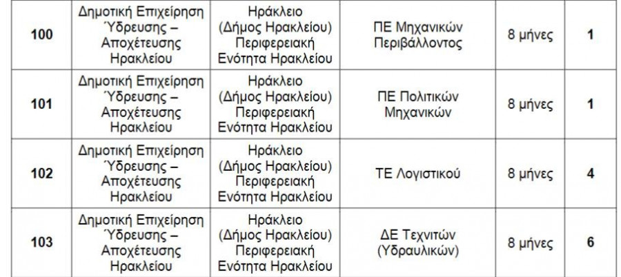 ΑΣΕΠ: Με 22 άτομα ενισχύεται η ΔΕΥΑ Ηρακλείου - Αναλυτικά οι πληροφορίες