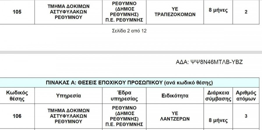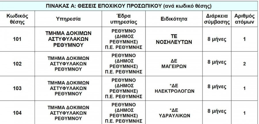 Το νέο προσωπικό θα υπογράψει 8μηνη σύμβαση εργασίας.