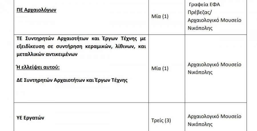 Την πρόσληψη πέντε υπαλλήλων προωθεί η Εφορεία Αρχαιοτήτων Πρέβεζας.