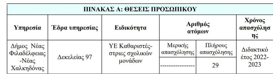 Πλήρους απασχόληση για καθαριστές/καθαρίστριες σχολικών μονάδων κατά το διδακτικό έτος 2022 - 2023.