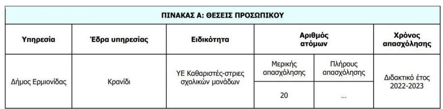 Μερική απασχόληση για καθαριστές/καθαρίστριες σχολικών μονάδων κατά το διδακτικό έτος 2022 - 2023.