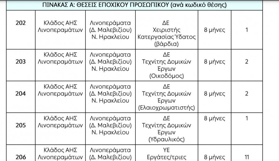 Το νέο προσωπικό θα υπογράψει 8μηνη σύμβαση εργασίας.