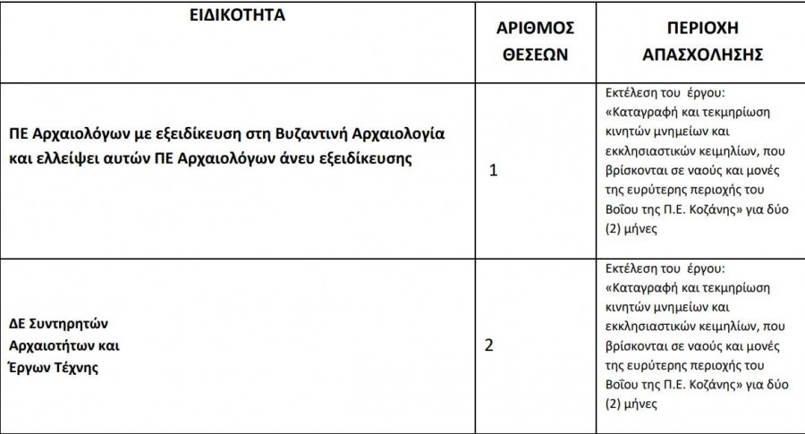 Προσλήψεις στην Εφορεία Αρχαιοτήτων Κοζάνης: Μέχρι 17/9 οι αιτήσεις