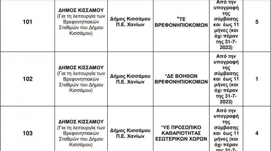 Η σύμβαση εργασίας ισχύει από την υπογραφή της σύμβασης και έως 11 μήνες (και όχι πέραν της 31-7-2023).