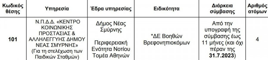 Το νέο προσωπικό θα υπογράψει σύμβαση εργασίας έως 11 μήνες, η οποία δεν παρατείνεται ούτε ανανεώνεται.