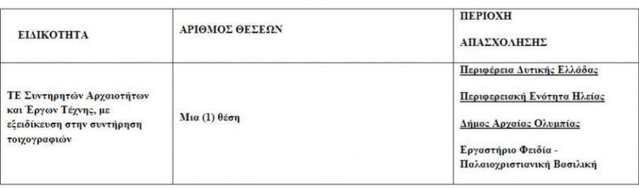 Δείτε αναλυτικά τις θέσεις: