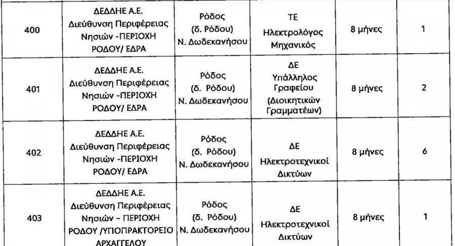 Οι θέσεις αφορούν σε Ρόδο, Κάρπαθο, Σύμη, Κάσο, Μεγίστη, Χάλκη και Τήλο.