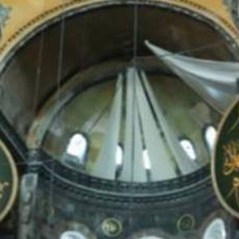 Σε φωτογραφίες που ανήρτησε στο Twitter Τούρκος δημοσιογράφος φαίνεται πως τοποθέτησαν οι τουρκικές Αρχές τριγωνικά υφάσματα στο θόλο, πάνω από το Ιερό Βήμα, όπου βρίσκεται η γνωστή εικόνα της βρεφοκρατούσας Παναγίας.