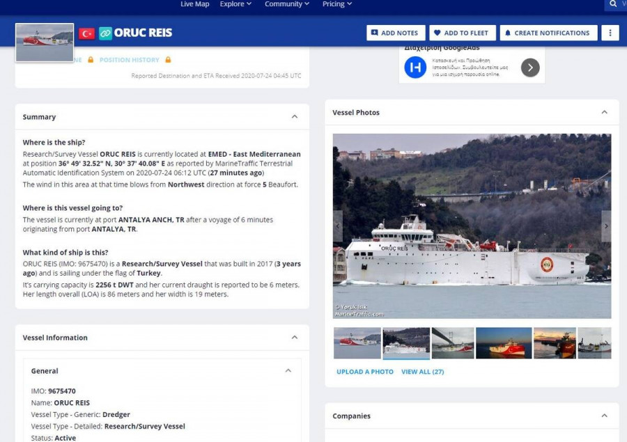 Ποιο είναι όμως, το τουρκικό ερευνητικό πλοίο, το οποίο έρχεται να προσθέσει ένα ακόμη «επεισόδιο» στις ήδη τεταμένες σχέσεις μεταξύ Αθήνας και Άγκυρας.