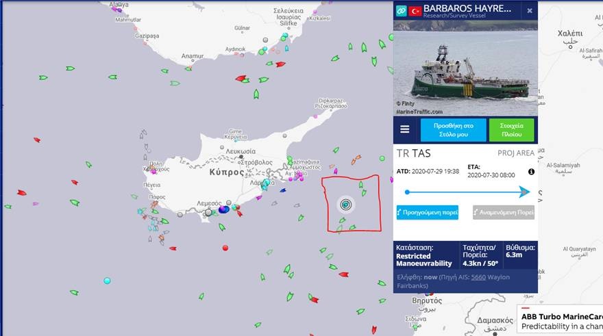Η Τουρκία, έχοντας πέσει σε «τοίχο» στην προσπάθεια της να δημιουργήσει τετελεσμένα και γκρίζες ζώνες στη θαλάσσια περιοχή μεταξύ Κρήτης και Καστελορίζου, επιχειρεί να διασώσει το γόητρο της, με νέα εισβολή του ερευνητικού σκάφους Barbaros στη κυπριακή ΑΟΖ και μάλιστα σε περιοχή που έχει κάνει έρευνες και στο παρελθόν.