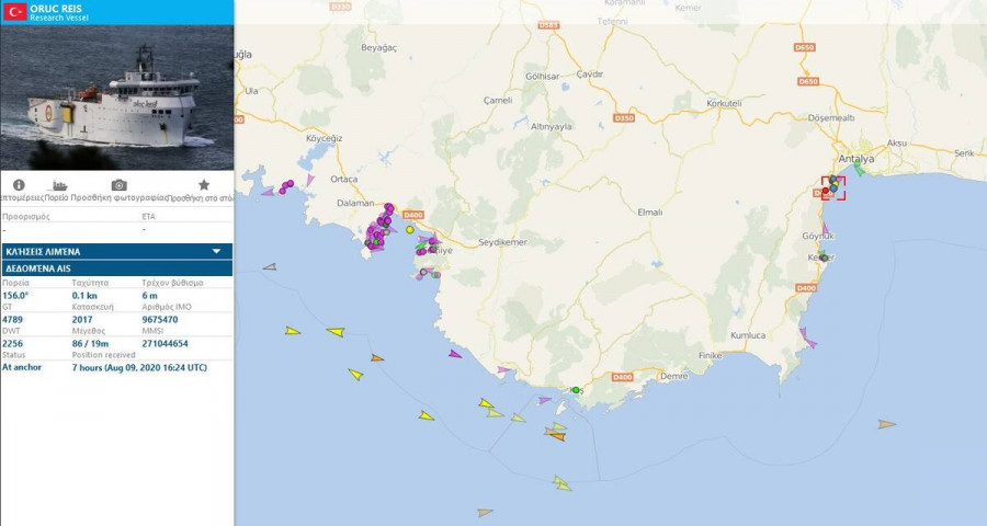 Σύμφωνα με ελληνικές πηγές, πάντως, το τουρκικό ερευνητικό βρισκόταν τουλάχιστον μέχρι τα μεσάνυχτα της Κυριακής στο αγκυροβόλιό του, στην Αττάλεια.