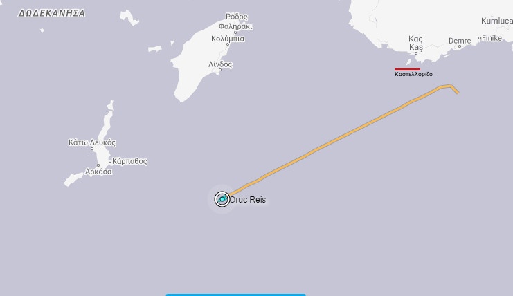 Αυτή τη στιγμή το τουρκικό ερευνητικό Oruc Reis βρίσκεται σε απόσταση περίπου 85 ναυτικών μιλίων από το σύμπλεγμα της Μεγίστης και το Καστελόριζο και κινείται προς τα δυτικά, με συνέπεια να πλησιάζει σε Ρόδο και Κάρπαθο από τις οποίες απέχει 48 και 40 ναυτικά μίλια αντίστοιχα.