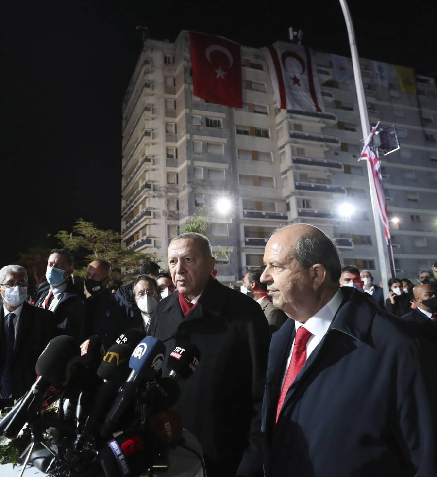 «Μια λύση δύο κρατών πρέπει να συζητηθεί και να διαπραγματευτεί με βάση την κυριαρχία της ισότητας», δήλωσε ο Ερντογάν, κατηγορώντας τους Ελληνοκύπριους ότι σαμποτάρουν την πρόοδο.
