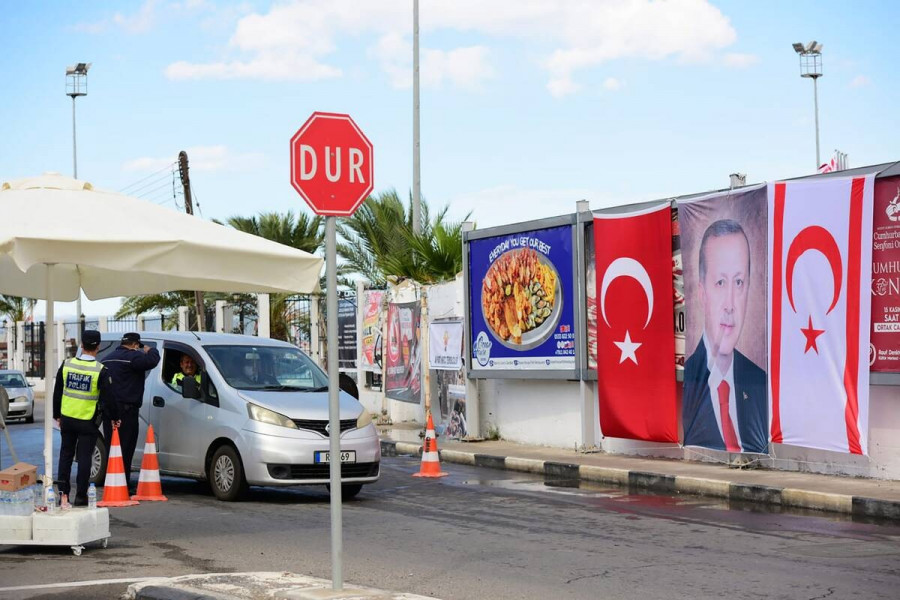 Τεράστιες σημαίες, τουρκικές και του κατοχικού καθεστώτος, έχουν αναρτηθεί σε πολυκατοικίες.