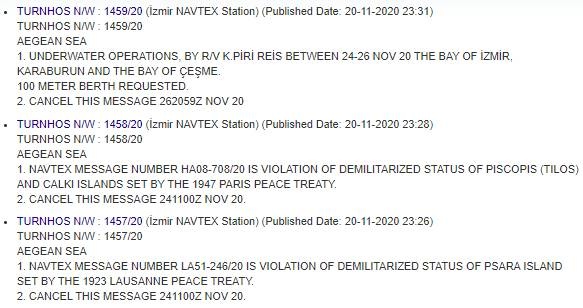 Όπως αναφέρεται στην τουρκική Navtex, παραβιάζονται τόσο η Συνθήκη της Λωζάνης, την οποία, ο τούρκος πρόεδρος Ρετζέπ Ταγίπ Ερντογάν, έχει πολλές αμφισβητήσει με δημόσιες τοποθετήσεις του, όσο και η Συνθήκη των Παρισίων.