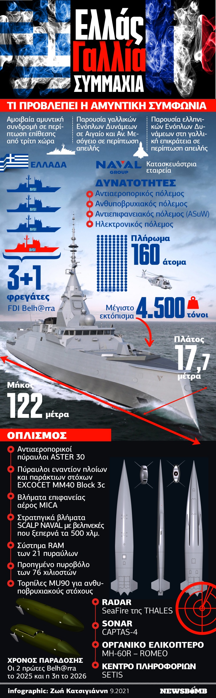 Τι περιλαμβάνει η συμφωνία Αθήνας – Παρισιού – Ποια τα χαρακτηριστικά, οι δυνατότητες και ο οπλισμός των νέων πλοίων που θα αποτελέσουν τις βασικές μονάδες κρούσης του ελληνικού Στόλου - Όλα τα στοιχεία στο Infographic του Newsbomb.gr