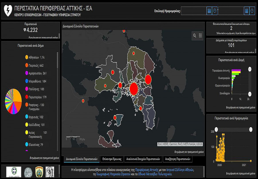 - Ανάπτυξη γεωχωρικού συστήματος καταγραφής και παρακολούθησης περιστατικών COVID - 19 σε συνεργασία με τον Ιατρικό Σύλλογο Αθηνών και την Περιφέρεια Αττικής.