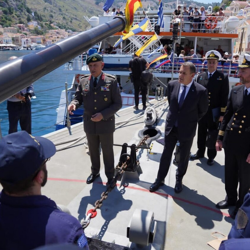 Στην συνέχεια, ο Υπουργός Εθνικής Άμυνας και ο Αρχηγός ΓΕΕΘΑ, μετέβησαν στην Κανονιοφόρο «ΝΙΚΗΦΟΡΟΣ» που βρίσκονταν ελλιμενισμένη στο λιμάνι της Σύμης, και συναντήθηκαν με το προσωπικό αυτής.