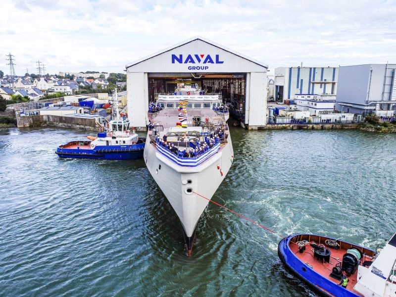 Ο κ. Δένδιας βρέθηκε στα ναυπηγεία της Λοριάν, στη βορειοδυτική Γαλλία, για την επίσημη καθέλκυση της πρώτης ελληνικής φρεγάτας Belh@rra που θα παραδοθεί στο Πολεμικό Ναυτικό από τη Naval Group.