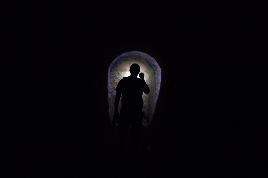 Το τρίτο καταφύγιο που επισκεπτόμαστε διαφέρει αρκετά από τα προηγούμενα δύο: Βρίσκεται σε έναν γνωστό λόφο του Πειραιά και απ’ έξω τίποτα δεν μαρτυρά την παρουσία του πέρα από μία -μικρή σχετικά- τρύπα στο έδαφος. Μέσα, τα πράγματα αλλάζουν: Δαιδαλώδεις, σκοτεινές σήραγγες, πολλές φορές μεγάλης κλίσης, που οδηγούν προς κάτω, φέρνουν στο μυαλό του γράφοντος περισσότερο τη «Μόρια», του βασιλείου των Νάνων του «Άρχοντα των Δαχτυλιδιών», παρά έναν χώρο που συνδέεται με τον Β’ Παγκόσμιο Πόλεμο.
