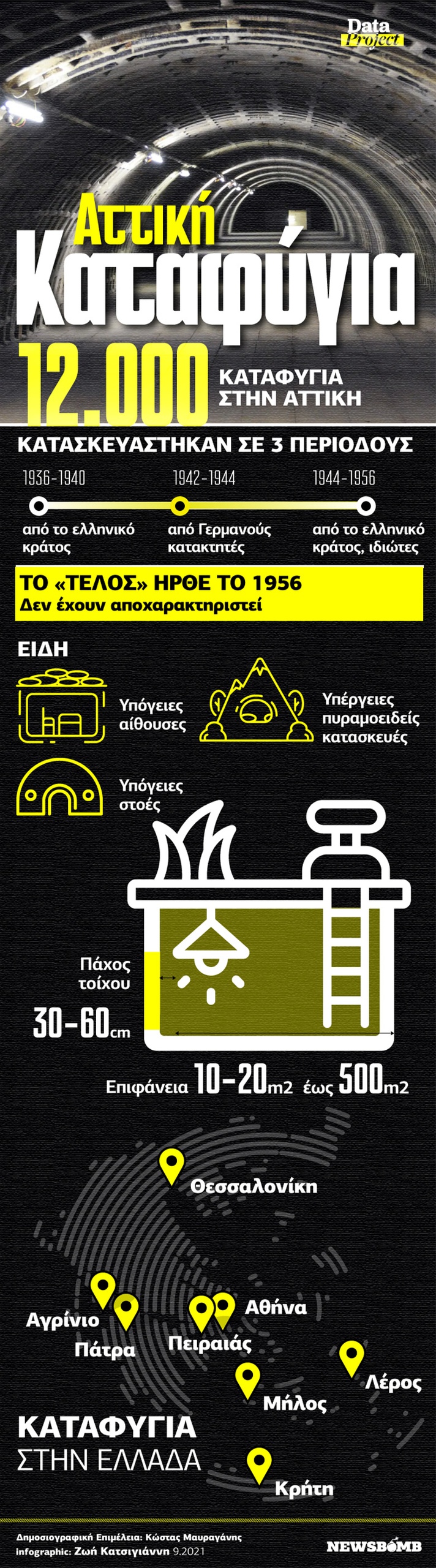 «Στην Ελλάδα δεν υπάρχουν ατομικά ή πυρηνικά καταφύγια, κυρίως επειδή δεν το επέτρεπε η οικονομική κατάσταση της χώρας. Η Ελλάδα εξήλθε από τον Εμφύλιο το 1949 και οι πόροι δεν αρκούσαν ούτε για να ανοικοδομηθεί η χώρα, πόσο μάλλον για να φτιάξουμε πάρα πολύ ακριβές και σύνθετες δομές όπως τα πυρηνικά καταφύγια - και δη για να στεγάσουν μια μεγαλούπολη όπως η Αθήνα. Τα τελευταία καταφύγια τα έχουμε τη δεκαετία του 1950, μέχρι το 1956, αλλά είναι μικρότερα σε μέγεθος και αρκετά πιο ‘ελαστικών’ προδιαγραφών», κλείνει ο κ. Κυρίμης αυτή την ιδιότυπη ξενάγηση.