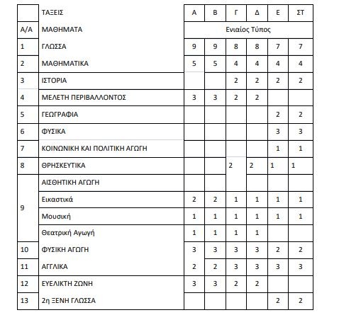Η κατανομή των ωρών διδασκαλίας των μαθημάτων στα δημοτικά