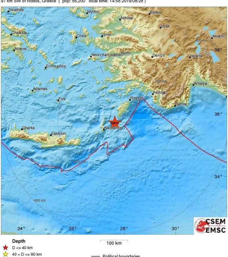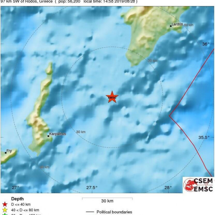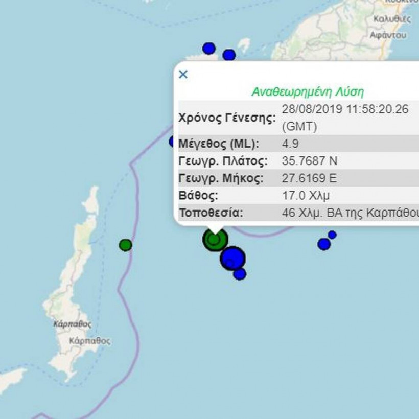 Εν τω μεταξύ σεισμός σημειώθηκε το μεσημέρι της Τετάρτης (28/08), στην Κάρπαθο.