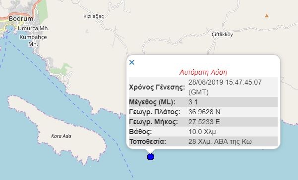 Σεισμός τώρα: Σεισμική δόνηση καταγράφηκε στις 6:47 μμ το της Τετάρτης, 28 Αυγούστου στον υποθαλάσσιο χώρο κοντά στην Κω.