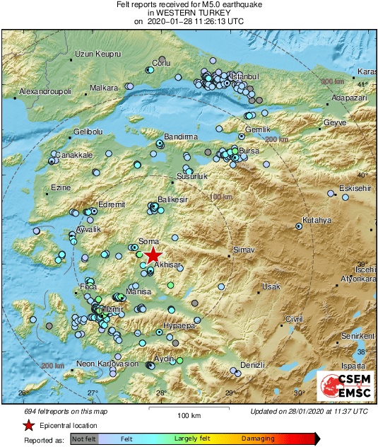 Ενώ, ακόμη η Τουρκία μετρά τα θύματά της από τον φονικό σεισμό των 6,8 Ρίχτερ, που στοίχισε τη ζωή σε τουλάχιστον 41 ανθρώπους, το βράδυ της περασμένης Παρασκευής (24/01). Ένας ακόμη σεισμός ξέσπασε αυτή την φορά στη Δυτική Τουρκία.