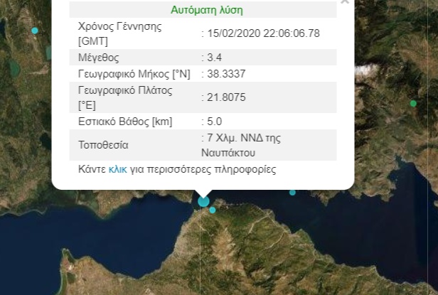 Το επίκεντρο του σεισμού εντοπίστηκε 7 χλμ νοτιοδυτικά της πόλης της Ναυπάκτου, ενώ το εστιακό βάθος του σεισμού υπολογίζεται στα 5χλμ.