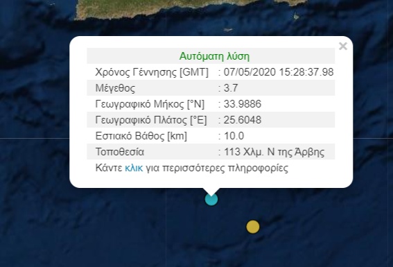 Νέα σεισμική δόνηση σημειώθηκε ανοιχτά από την Κρήτη, το απόγευμα της Πέμπτης.