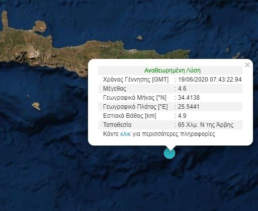 Σεισμός: Σεισμική δόνηση 4,6 Ρίχτερ σημειώθηκε το πρωί της Παρασκευής (19/06) στην Κρήτη