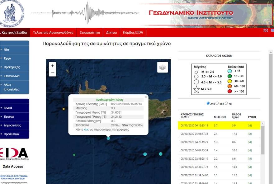 Δείτε LIVE τι καταγράφει το Γεωδυναμικό Ινστιτούτο (παρακολούθηση της σεισμικότητας σε πραγματικό χρόνο τις τελευταίες 48 ώρες)