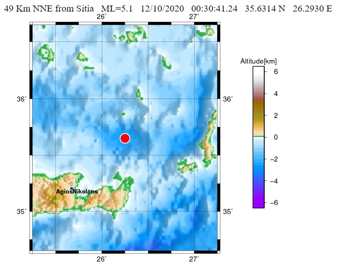 H αναθεωρημένη λύση του Γεωδυναμικού Ινστιτούτου του Αστεροσκοπείου Αθηνών δίνει το σεισμό στα 5,1 Ρίχτερ, με εστιακό βάθος τα 21,3 χλμ., και επίκεντρο τα 49 χλμ. βόρεια-βορειοανατολικά της Σητείας.