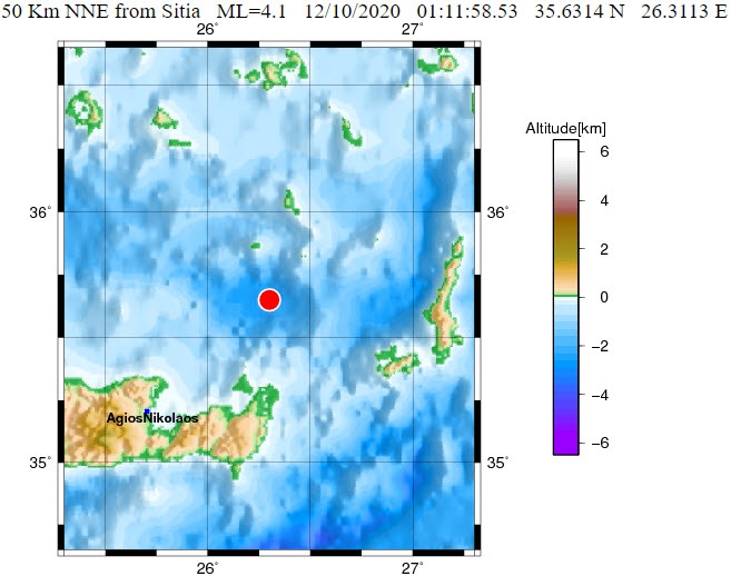Το ακριβές επίκεντρο τη δόνησης εντοπίζεται στα 50 χλμ. βόρεια της Σητείας.