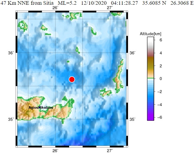 Το ακριβές επίκεντρο τη δόνησης εντοπίζεται στα 48 χλμ. βόρεια της Σητείας.