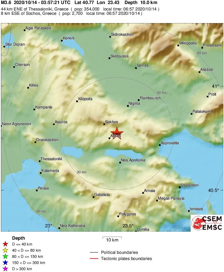 Το εστιακό βάθος του σεισμού, σύμφωνα με την εκτίμηση του EMSC, υπολογίζεται στα 10 χλμ.