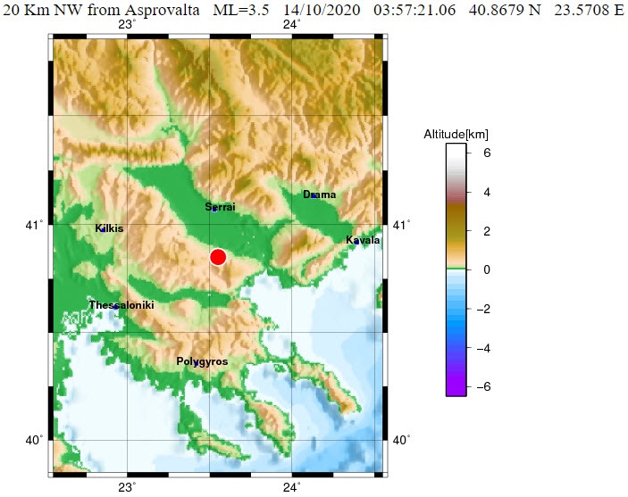 H αυτόματη λύση του Γεωδυναμικού Ινστιτούτου του Αστεροσκοπείου Αθηνών δίνει το σεισμό στα 3,5 Ρίχτερ, με εστιακό βάθος τα 21,9 χλμ., και επίκεντρο τα 20 χλμ. βορειοδυτικά της Ασπροβάλτας.