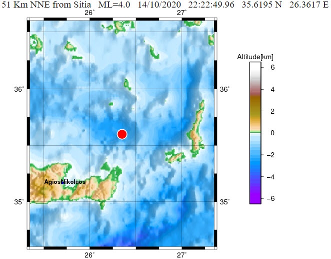 H αυτόματη λύση του Γεωδυναμικού Ινστιτούτου του Αστεροσκοπείου Αθηνών δίνει το σεισμό στα 4,0 Ρίχτερ, με εστιακό βάθος τα 12,1 χλμ., και επίκεντρο τα 51 χλμ. βόρεια-βορειοανατολικά της Σητείας.