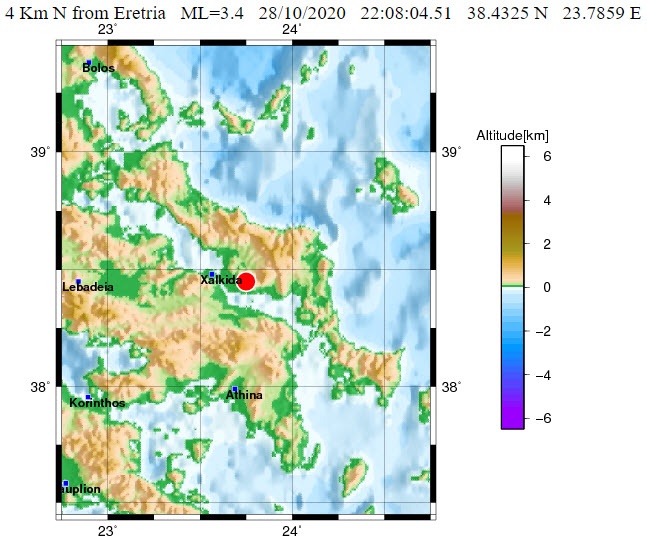 Η αναθεωρημένη λύση του Γεωδυναμικού Ινστιτούτου Αθηνών δίνει το σεισμό στα 3,4 Ρίχτερ, με εστιακό βάθος τα 16 χλμ., και επίκεντρο τα 4 χλμ. βόρεια της Ερέτριας.