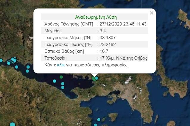 Σεισμική δόνηση σημειώθηκε στις 1:46 τα ξημερώματα της Δευτέρας κοντά στη Θήβα.