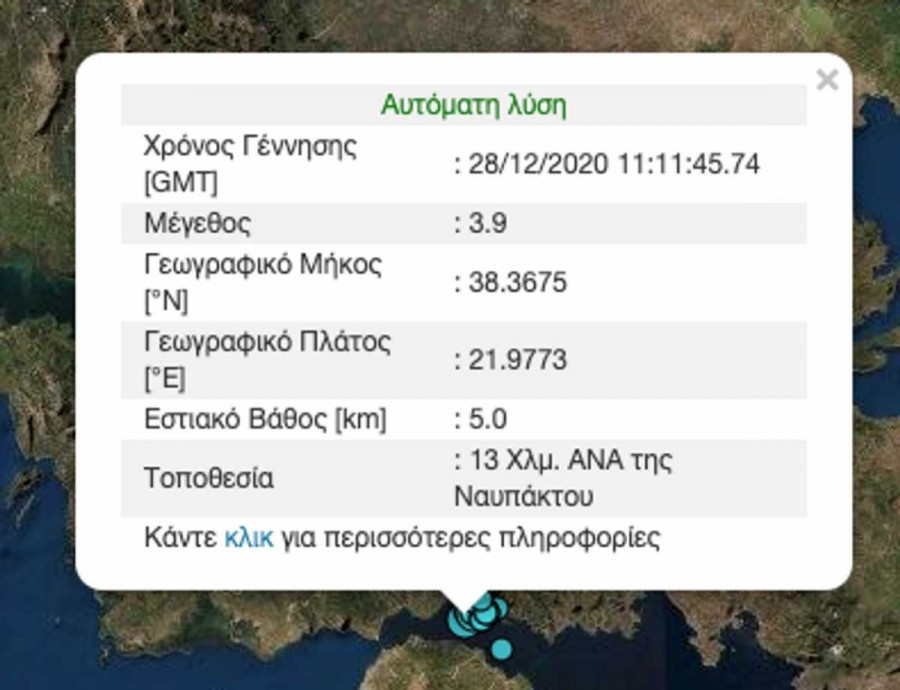 Σεισμός 3,9 Ρίχτερ σημειώθηκε λίγο μετά τις 11 το μεσημέρι στη Ναύπακτο.