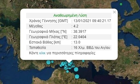 Σεισμός σημειώθηκε στις 11:40 την Τετάρτη (13/01) σε θαλάσσια περιοχή κοντά στο Αίγιο