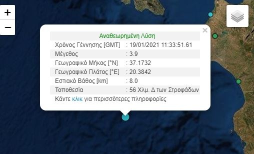 Σεισμός Τώρα: Σεισμική δόνηση 3,9 βαθμών της κλίμακας Ρίχτερ σημειώθηκε στα δυτικά των Στροφάδων στο Ιόνιο Πέλαγος.