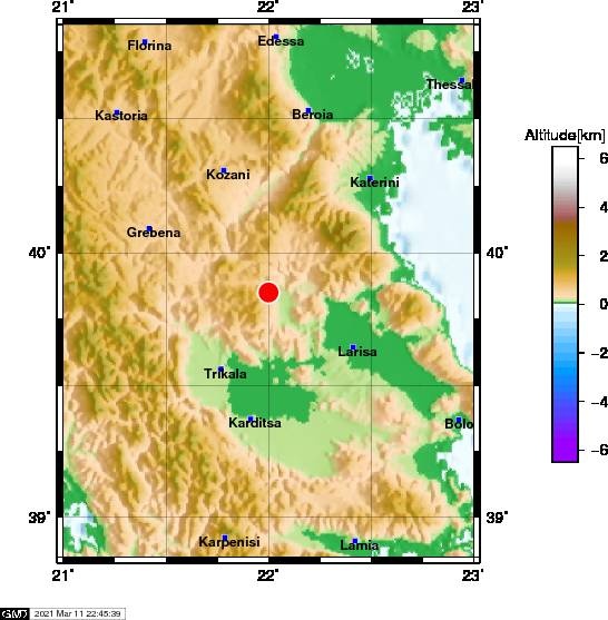 Το ακριβές επίκεντρο τη δόνησης εντοπίζεται στα 16 χλμ. δυτικά - νοτιοδυτικά της Ελασσόνας.