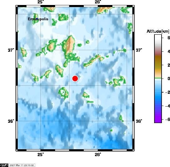 H αυτόματη λύση του Γεωδυναμικού Ινστιτούτου του Αστεροσκοπείου Αθηνών δίνει το σεισμό στα 3,6 Ρίχτερ, με εστιακό βάθος τα 10 χλμ., και επίκεντρο τα 26 χλμ. ανατολικά - νοτιοανατολικά της Ίου.