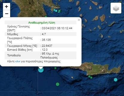 Σύμφωνα με τα πρώτα στοιχεία του Γεωδυναμικού Ινστιτούτου, ο σεισμός είχε μέγεθος 4.7 βαθμούς της κλίμακας Ρίχτερ.