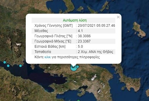 Το επίκεντρο του σεισμού σύμφωνα με την αυτόματη ανάλυση του Γεωδυναμικού Ινστιτούτου εντοπίστηκε 2χλμ ανατολικά της Θήβας.
