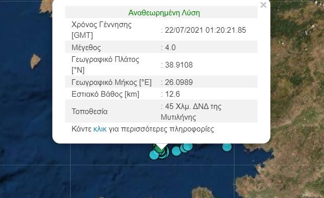 Μπαράζ σεισμών κοντά στη Μυτιλήνη